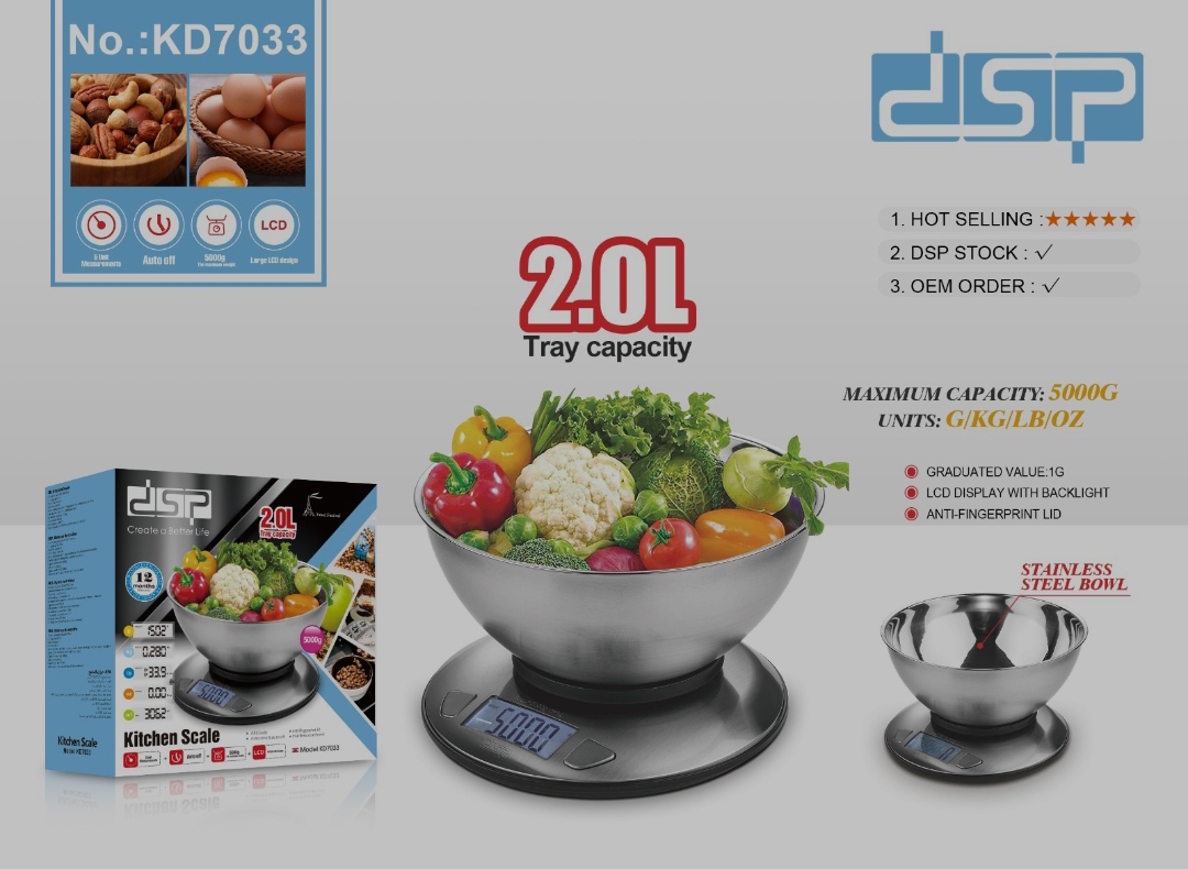 ترازوی آشپزخانه دی اس پی مدل KD7033 کاسه دار استیل