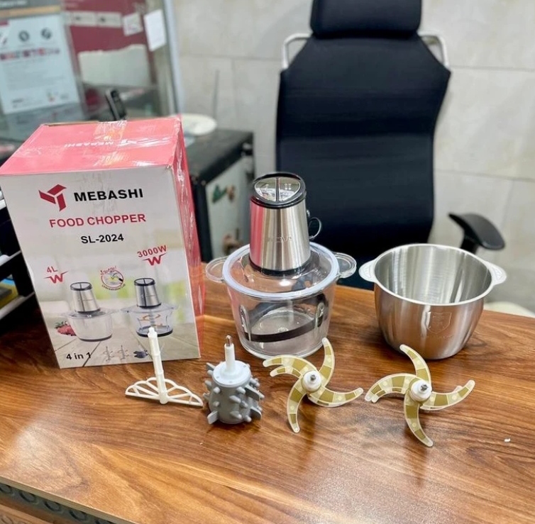خردکن دوکاسه مباشی ژاپن- ظرفیت 4+4 لیتر- 6+6 تیغه تیتانیوم طلایی همراه با سیر پوست کن و همزن- 3 کاره- قدرت 3000W وات مدل SL2024